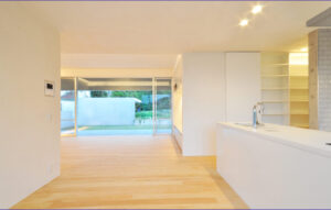 初期に計画した、ある住宅が金城氏の建築観を大きく変えました。密集地にありながらプライバシーと開放性を両立させるため、中庭を持つ白い箱のような、外に対して閉じた建築を提案しました 。